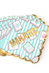 Single-use paper beverage napkins with Mahjong tile pattern and scalloped gold foil edges
